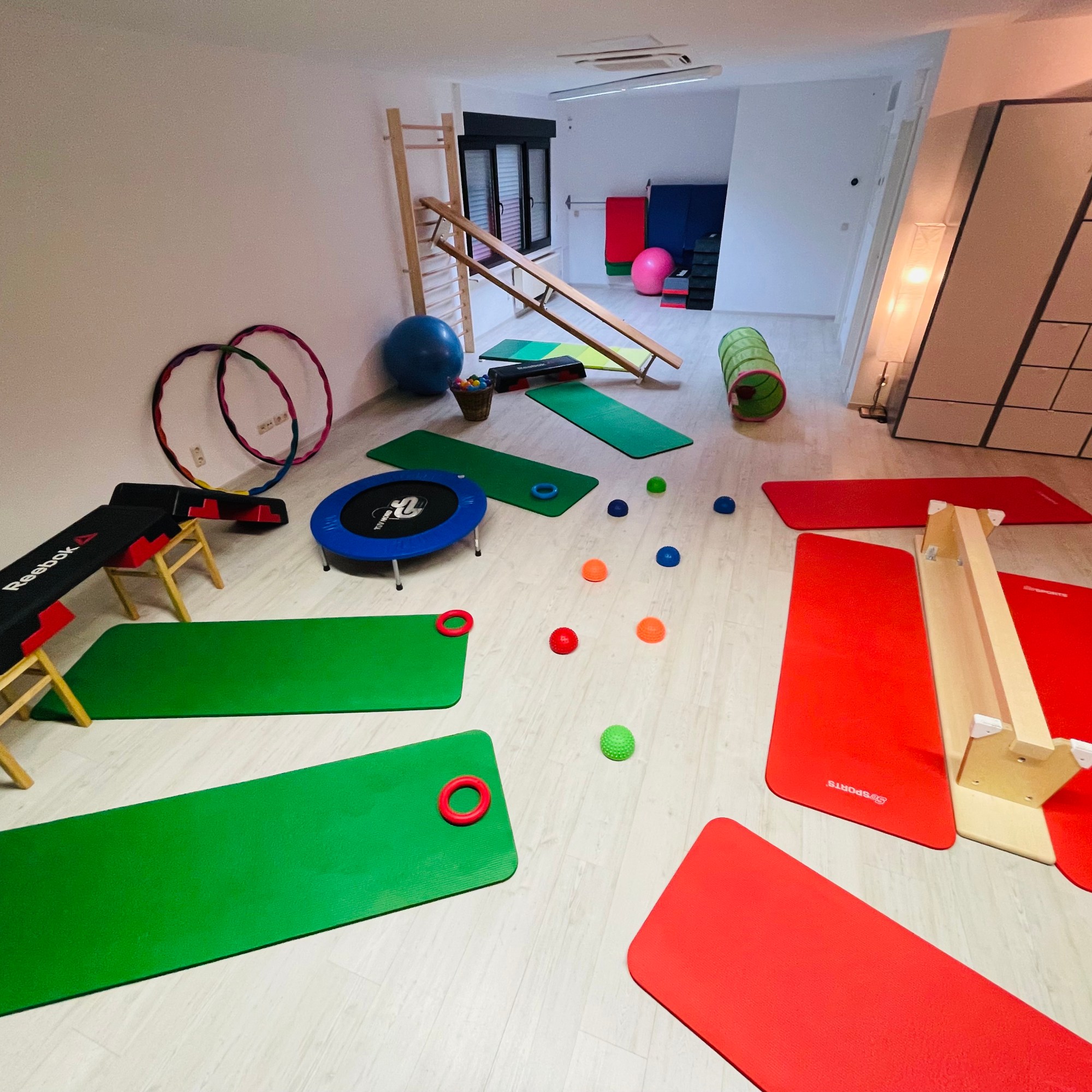 Hier ein paar Inneneindrücke von unserem Sportraum. Mit Matten, Schwingstäben, Faszienrollen, Bällen in allen Größen und vielem mehr ist alles da für einen abwechslungsreichen Sportkurs für Kinder und Erwachsene…
